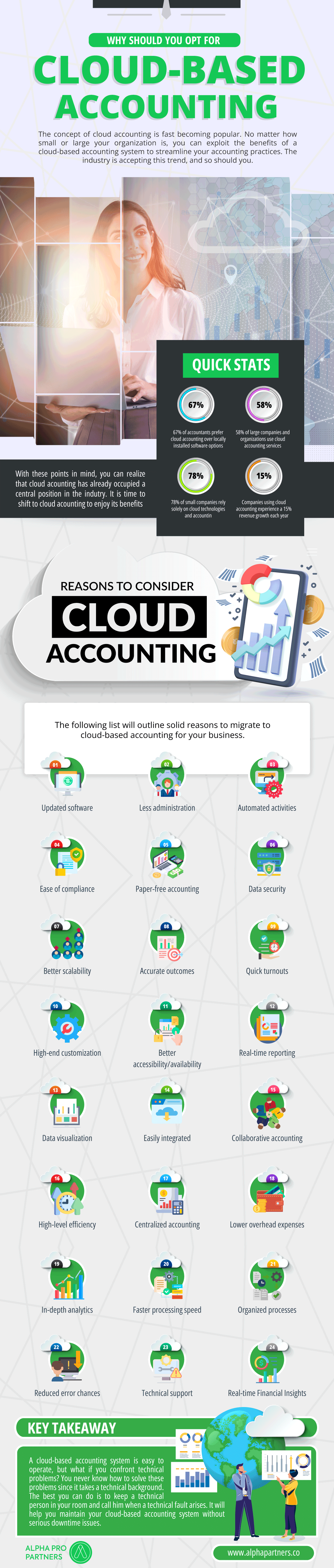 The concept of cloud accounting is fast becoming popular. No matter how small or large your organization is, you can exploit the benefits of a cloud-based accounting system to streamline your accounting practices. The industry is accepting this trend, and so should you.